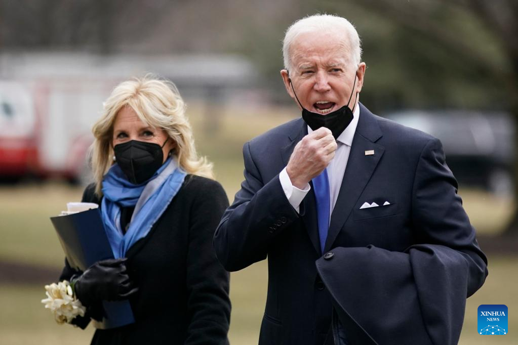 WASHINGTON, Feb. 15 (Xinhua) -- U.S. President Joe Biden on Tuesday said the United States is still pursuing a diplomatic solution to the current standoff between Russia and the West over Ukraine, meanwhile warning Russia of severe sanctions should it choose to invade its neighbor.