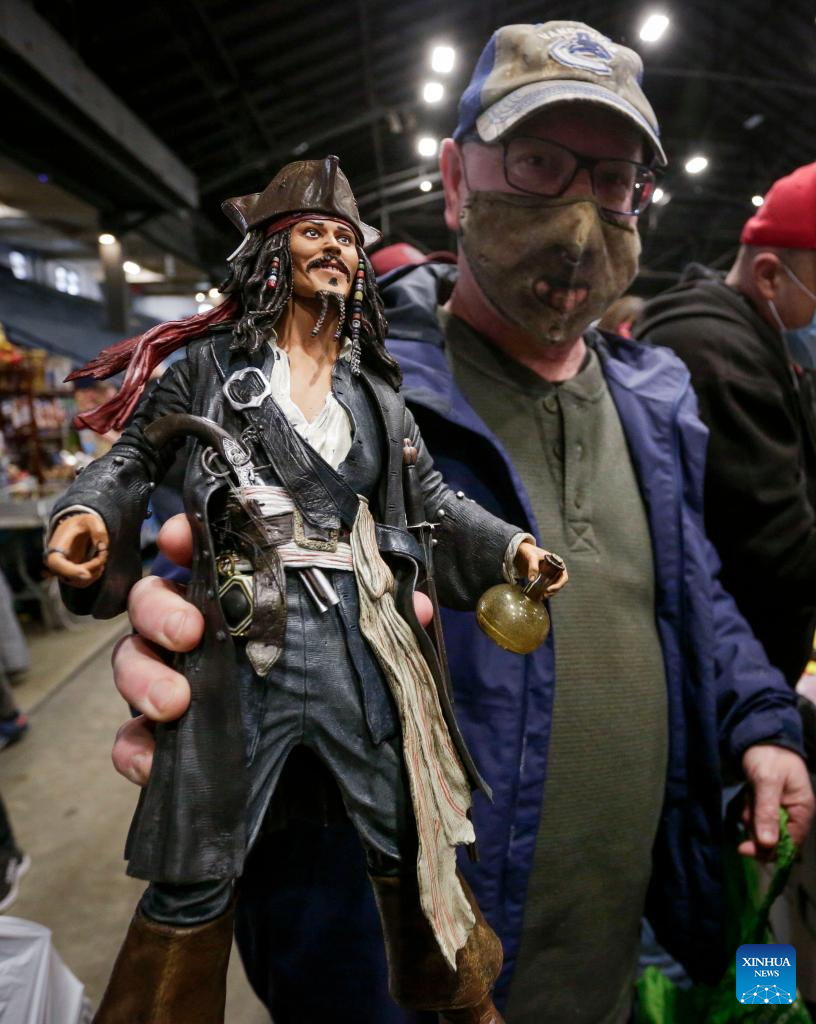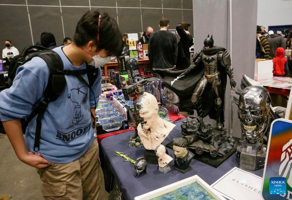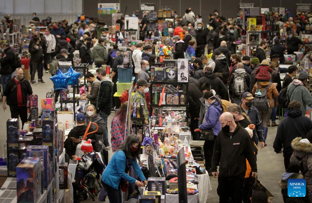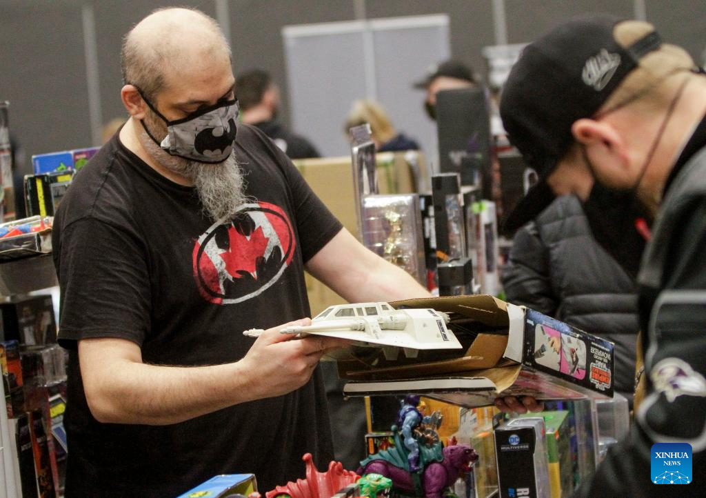 People visit the Vancouver Comic and Toy Show in Vancouver, British Columbia, Canada, on Feb. 27, 2022. The Vancouver Comic and Toy Show which was held here on Sunday, features collectible toys, superhero memorabilia, comic books and other similar pop culture items that drawing thousands of collectors and enthusiasts to participate. (Photo by Liang Sen/Xinhua)