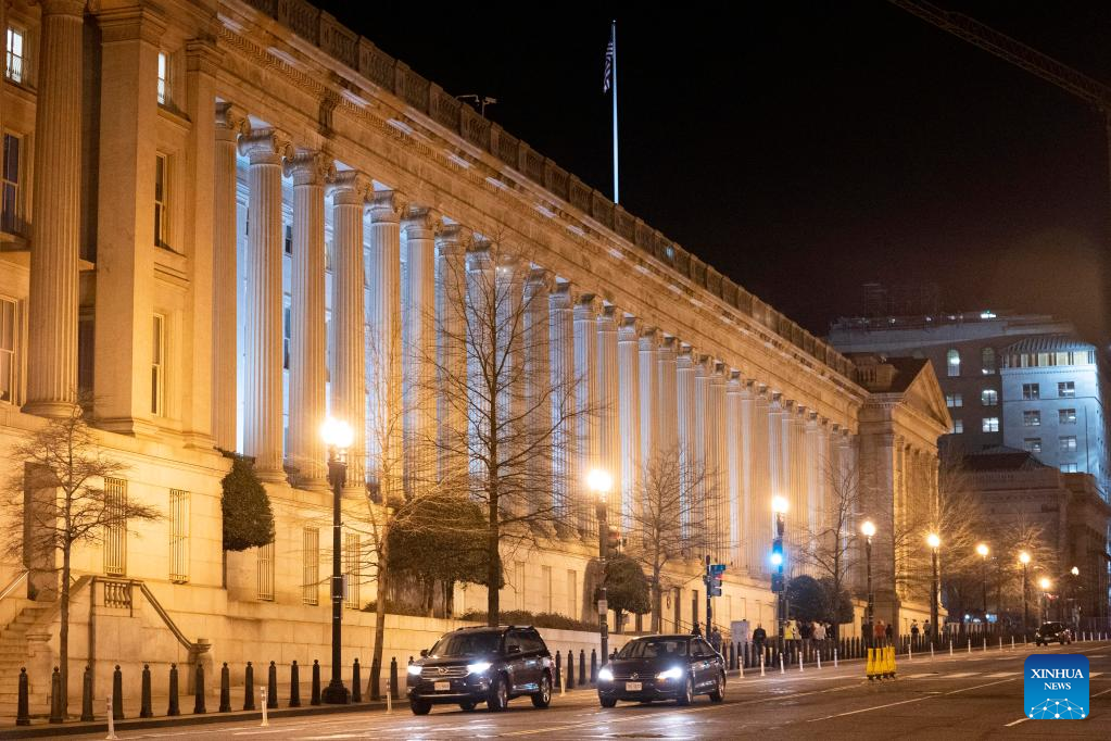The U.S. Department of the Treasury on Monday announced a fresh round of sanctions targeting Russia's central bank, the country's financial tools as well as a relevant individual, in response to Moscow's ongoing military operations in Ukraine. (Xinhua/Liu Jie)