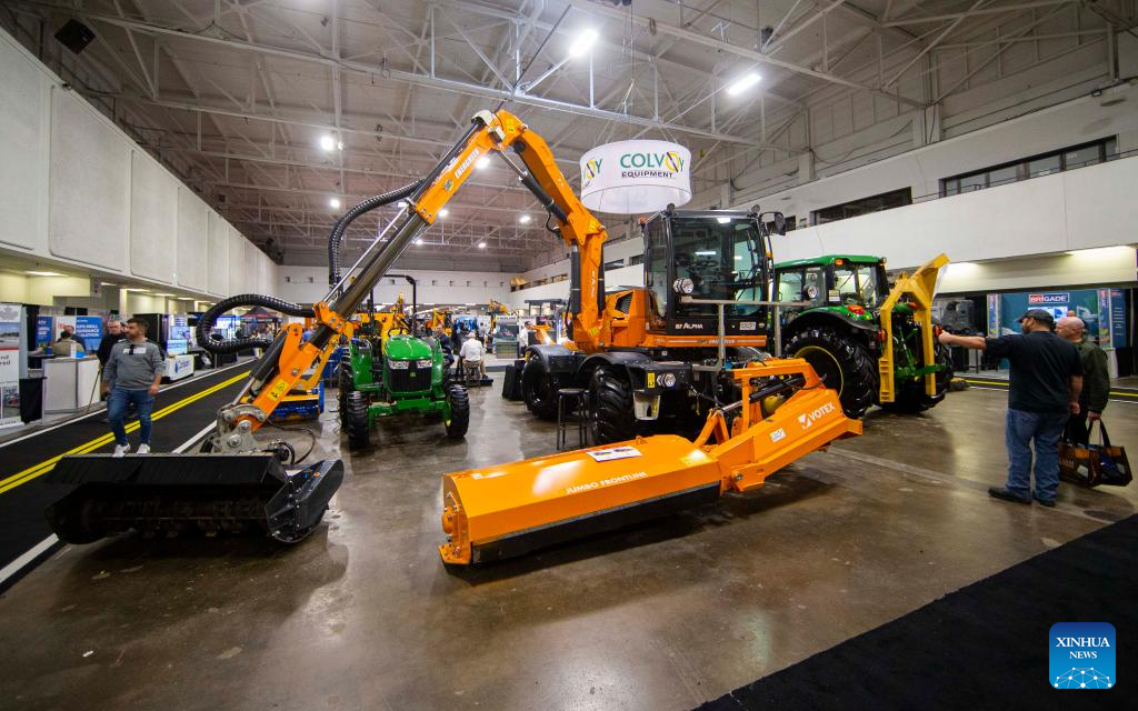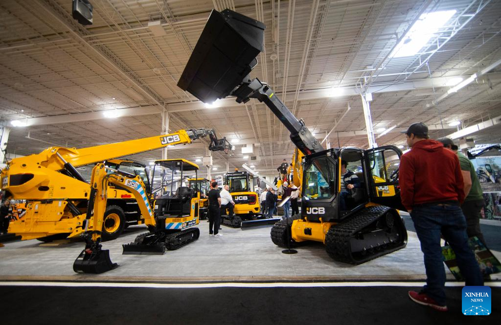 People visit the 2022 National Heavy Equipment Show in Mississauga, the Greater Toronto Area, Canada, on March 31, 2022. As one of the largest heavy equipment shows in Canada, the two-day show kicked off here on Thursday, with the participation of exhibitors in road building, construction, snow removal, aggregate, screening and infrastructure sectors. (Photo by Zou Zheng/Xinhua)