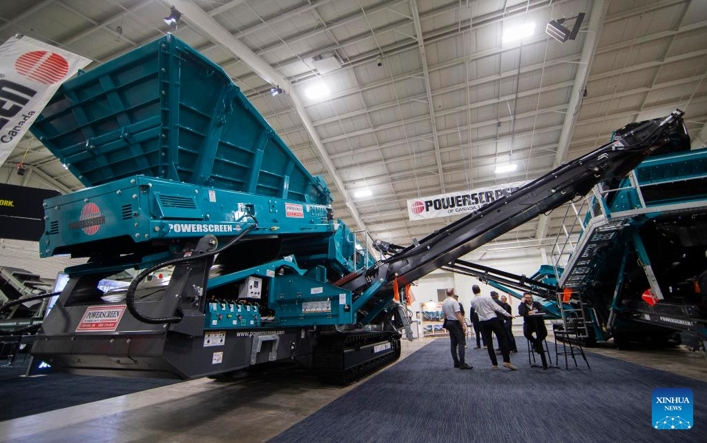 A Warrior 2100 scalping screen is seen during the 2022 National Heavy Equipment Show in Mississauga, the Greater Toronto Area, Canada, on March 31, 2022. As one of the largest heavy equipment shows in Canada, the two-day show kicked off here on Thursday, with the participation of exhibitors in road building, construction, snow removal, aggregate, screening and infrastructure sectors. (Photo by Zou Zheng/Xinhua)