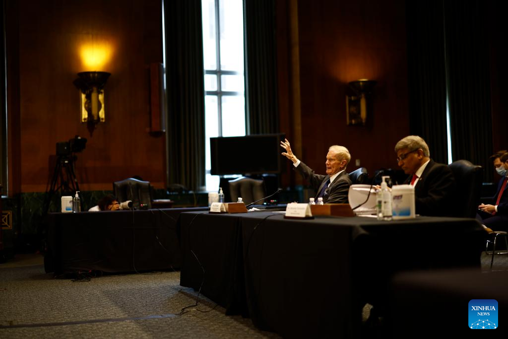 NASA Administrator Bill Nelson (3rd R) attends a subcommittee hearing of U.S. Senate Appropriations Committee titled "A Review of the President's Fiscal Year 2023 Funding Request for the National Aeronautics and Space Administration and the National Science Foundation" on Capitol Hill in Washington, D.C., the United States, on May 3, 2022. (Photo by Ting Shen/Xinhua)