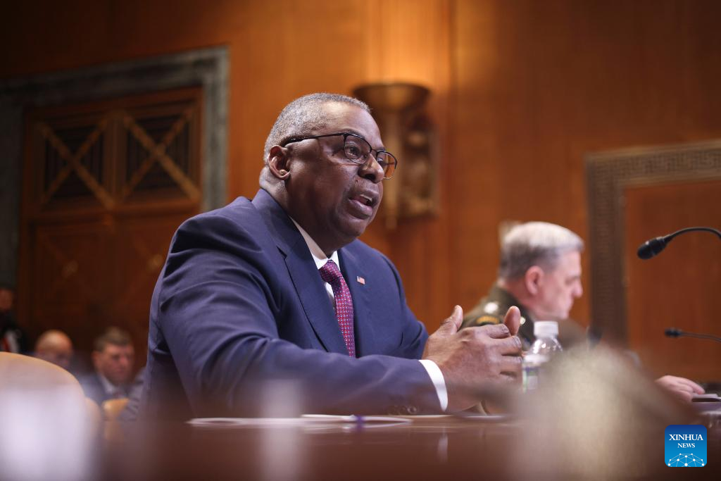 U.S. Secretary of Defense Lloyd Austin attends a subcommittee hearing of U.S. Senate Appropriations Committee titled "A review of the President's Fiscal Year 2023 funding request and budget justification for the Department of Defense" on Capitol Hill in Washington, D.C., the United States, on May 3, 2022. (Win McNamee/Pool via Xinhua)