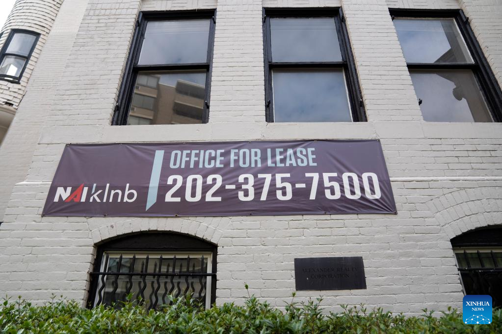 Photo taken on May 11, 2022 shows an "Office for Lease" notice in Washington, D.C., the United States. U.S. consumer inflation in April surged by 8.3 percent from a year ago, marking the second straight month of inflation over 8 percent, the U.S. Labor Department reported Wednesday. (Xinhua/Liu Jie)
