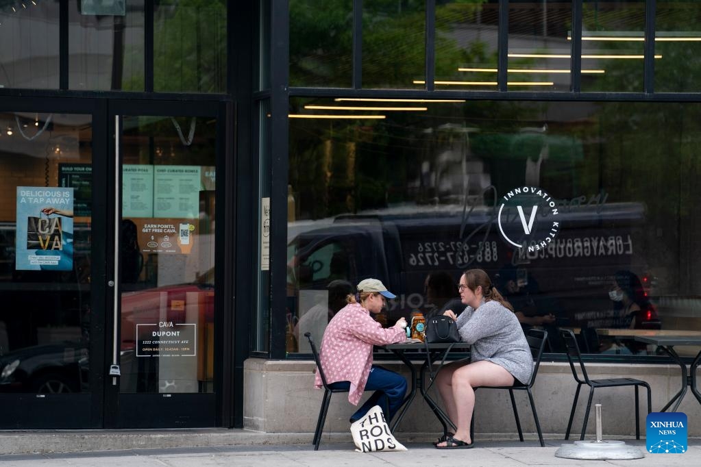 People spend time outside a restaurant in Washington, D.C., the United States, on May 11, 2022. U.S. consumer inflation in April surged by 8.3 percent from a year ago, marking the second straight month of inflation over 8 percent, the U.S. Labor Department reported Wednesday. (Xinhua/Liu Jie)