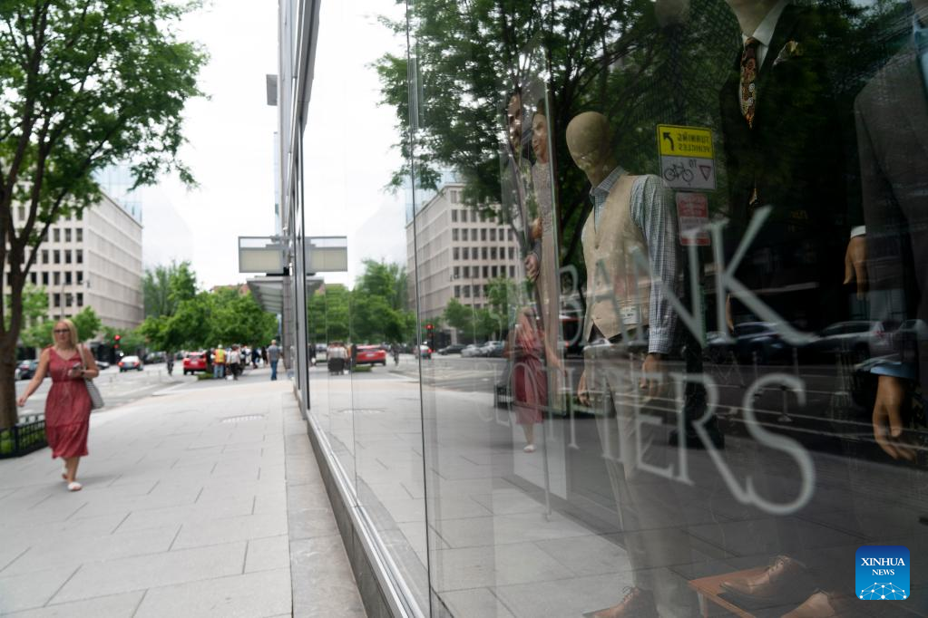 People walk past a store in Washington, D.C., the United States, on May 11, 2022. U.S. consumer inflation in April surged by 8.3 percent from a year ago, marking the second straight month of inflation over 8 percent, the U.S. Labor Department reported Wednesday. (Xinhua/Liu Jie)