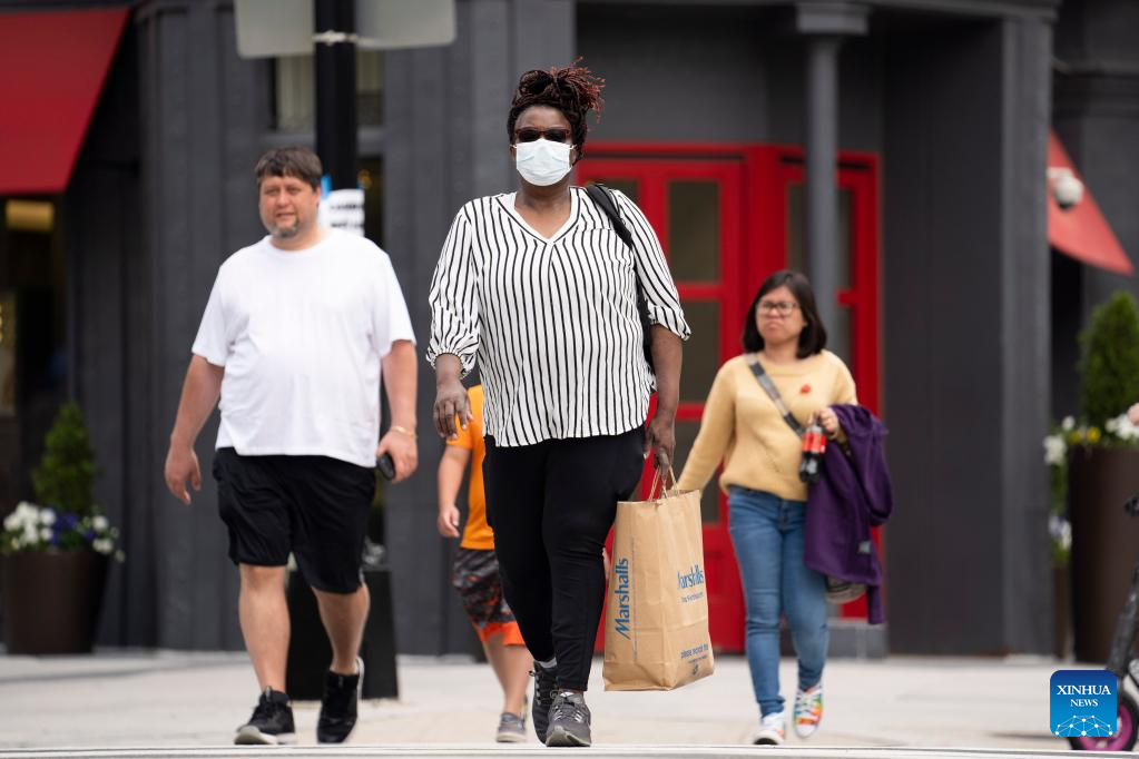 People walk on a street in Washington, D.C., the United States, on May 11, 2022. U.S. consumer inflation in April surged by 8.3 percent from a year ago, marking the second straight month of inflation over 8 percent, the U.S. Labor Department reported Wednesday. (Xinhua/Liu Jie)