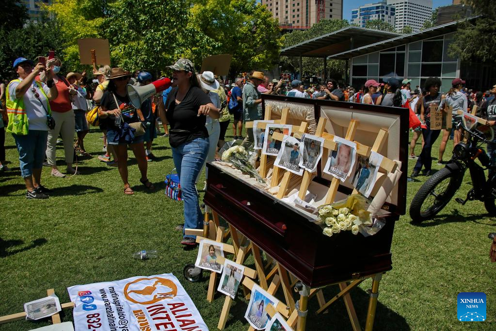 "It was really heartbreaking ... those children who literally have yet to even know what they wanna do, discover their talents, discover their hobbies in the future...They're supposed to learn who they are and they got that taken away from them," Olivia Otou-Branckeart, an 18-year-old high school senior, told Xinhua at the rally.
