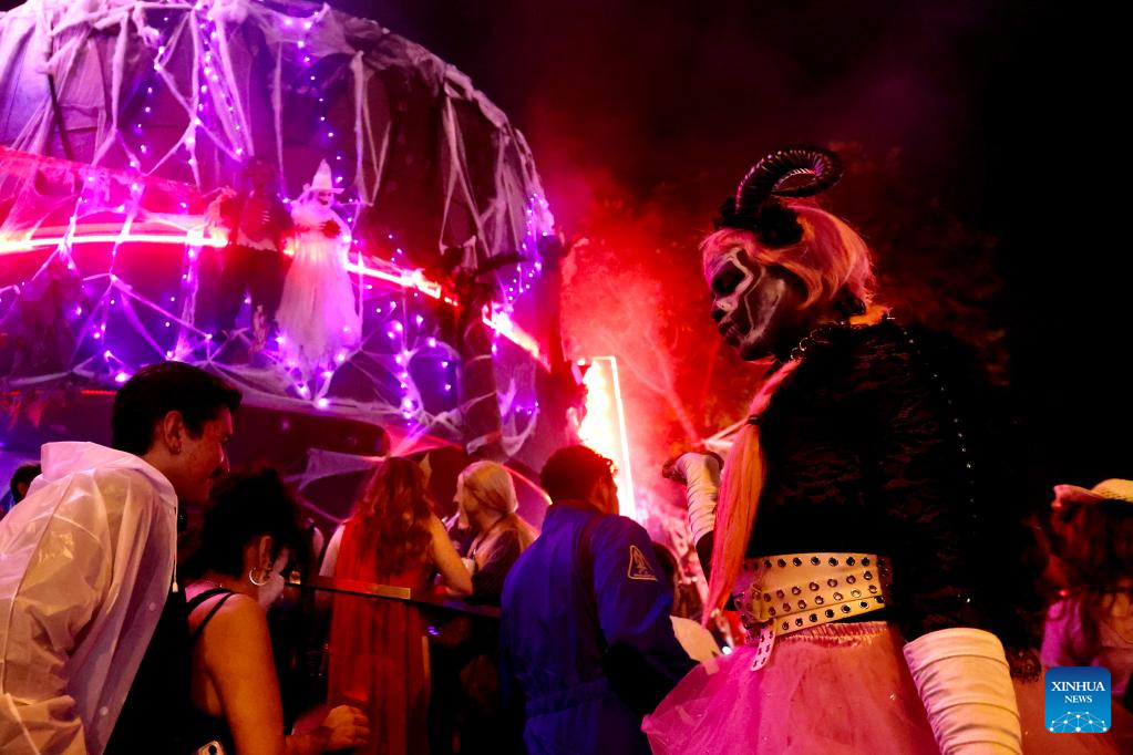 People gather to celebrate the Halloween in West Hollywood, Los Angeles, California, the United States on Oct. 31, 2022. (Xinhua)