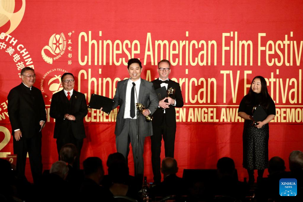 One of the honorees addresses the awarding ceremony at the 18th Chinese American Film Festival and the Chinese American Television Festival in Los Angeles, California, the United States, Nov. 4, 2022. (Xinhua)