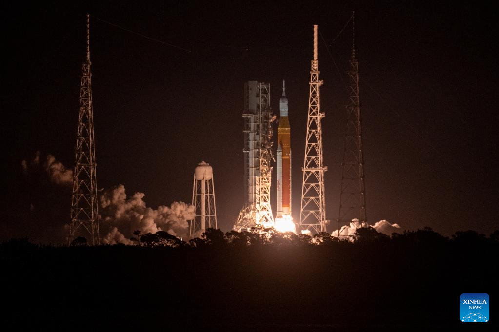 LOS ANGELES, Nov. 16 (Xinhua) -- NASA launched the Artemis I mission on Wednesday after two failed attempts, sending the agency's mega Moon rocket and integrated Orion spacecraft on a journey around the moon.