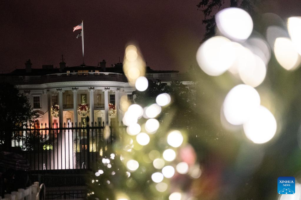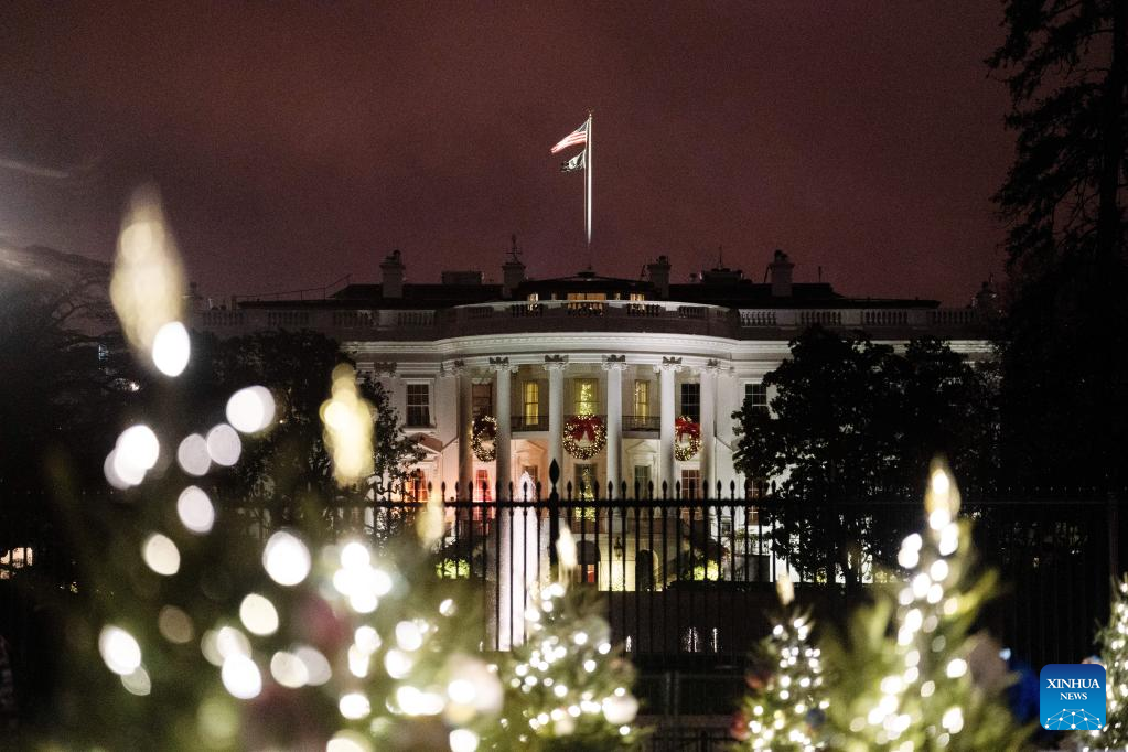 This photo taken on Dec. 22, 2022 shows the White House in Washington, D.C., the United States. Over 200 million people, or roughly 60 percent of the U.S. population, are under some form of winter weather warnings or advisories across the United States, said the National Weather Service (NWS) on Thursday. (Xinhua/Liu Jie)
