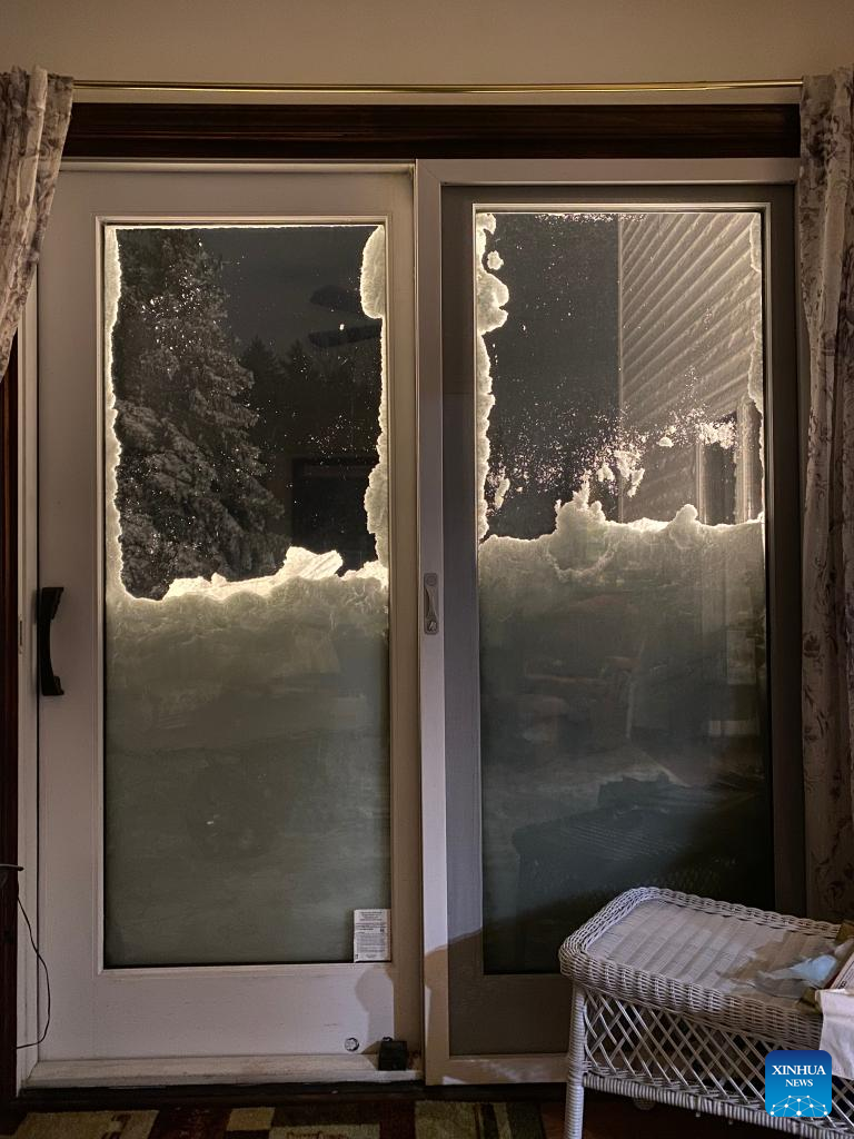 A door to the deck of a house is half buried by snow in Amherst, Erie County, New York State, the United States, Dec. 24, 2022. A major winter storm has taken at least 23 lives across the United States as of Saturday evening, according to NBC News. The media outlet reported that deaths had occurred in the states of Oklahoma, Kentucky, Missouri, Tennessee, Wisconsin, Kansas, Nebraska, Ohio, New York, Colorado, and Michigan. (Photo by Xuehong Lyu/Xinhua)