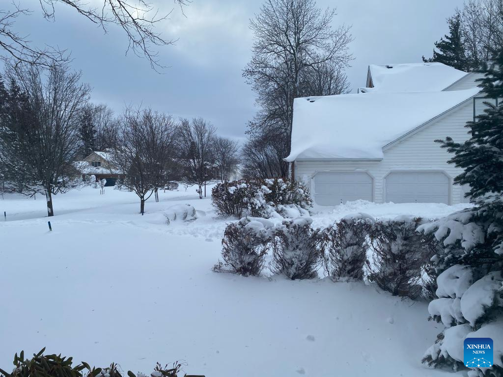 Heavy snow blankets the court yard of a house and surrounding areas in Amherst, Erie County, New York State, the United States, Dec. 25, 2022. A major winter storm has taken at least 23 lives across the United States as of Saturday evening, according to NBC News. The media outlet reported that deaths had occurred in the states of Oklahoma, Kentucky, Missouri, Tennessee, Wisconsin, Kansas, Nebraska, Ohio, New York, Colorado, and Michigan. (Photo by Xuehong Lyu/Xinhua)