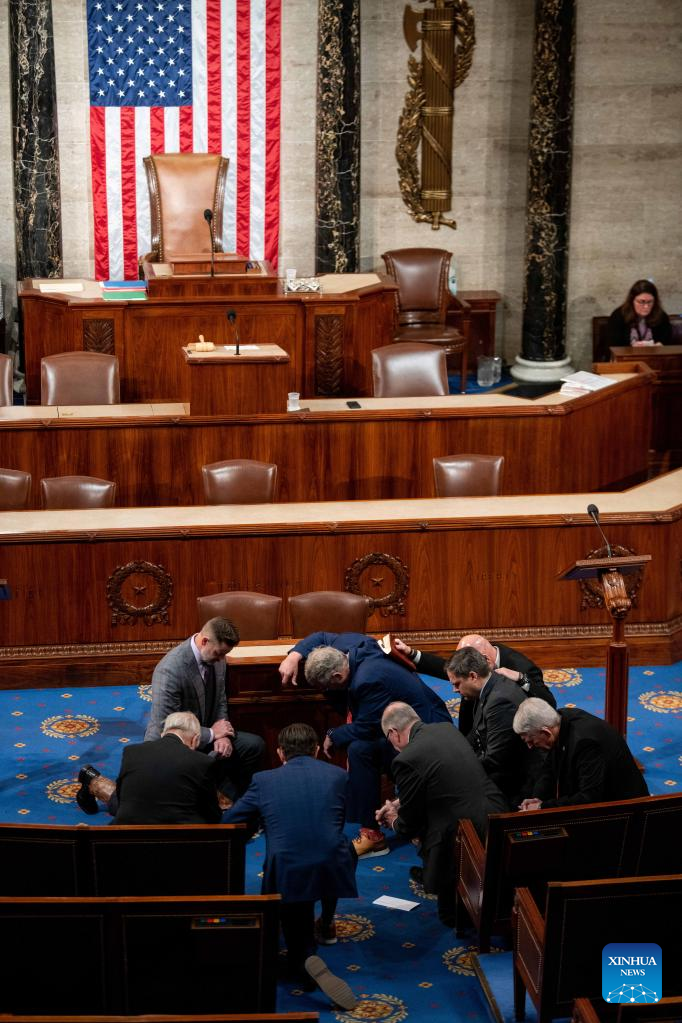WASHINGTON, Jan. 6 (Xinhua) -- The U.S. House of Representatives has adjourned until late Friday night as Congressman Kevin McCarthy is seeking to flip more Republican holdouts to overcome the embarrassing speakership impasse.