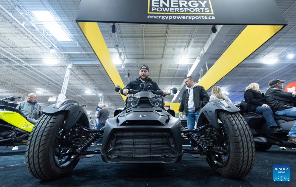 People visit the 2023 North American International Motorcycle Supershow in Mississauga, the Greater Toronto Area, Canada, on Jan. 7, 2023. This annual event is held here from Friday to Sunday with over 1,000 motorcycles from above 500 exhibitors. (Photo by Zou Zheng/Xinhua)