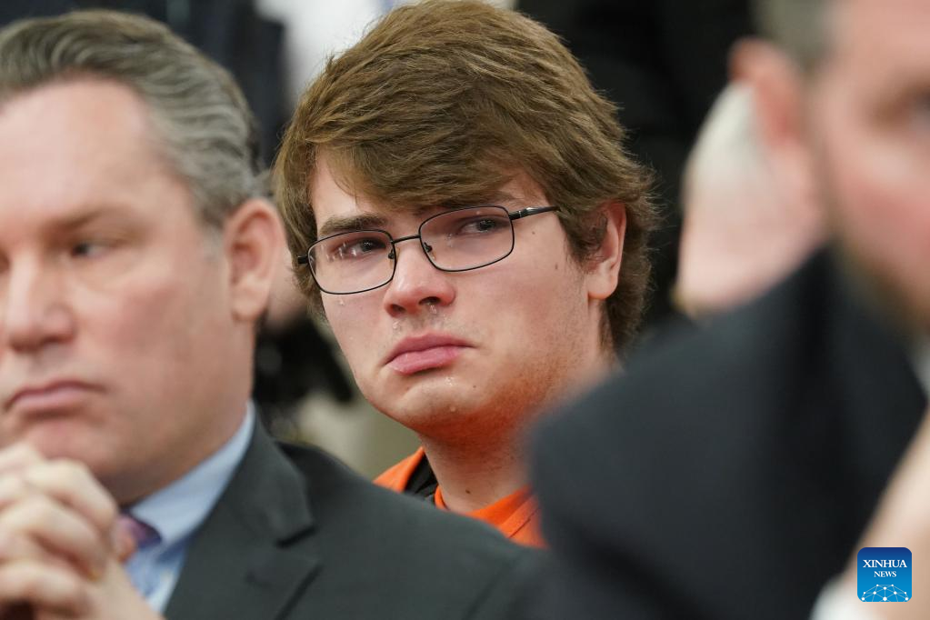 NEW YORK, Feb. 15 (Xinhua) -- The 19-year-old man Payton Gendron, who committed the mass shooting last May in Buffalo of the U.S. state of New York, was sentenced to life in prison without parole on Wednesday as expected while white supremacy got bashed at court.