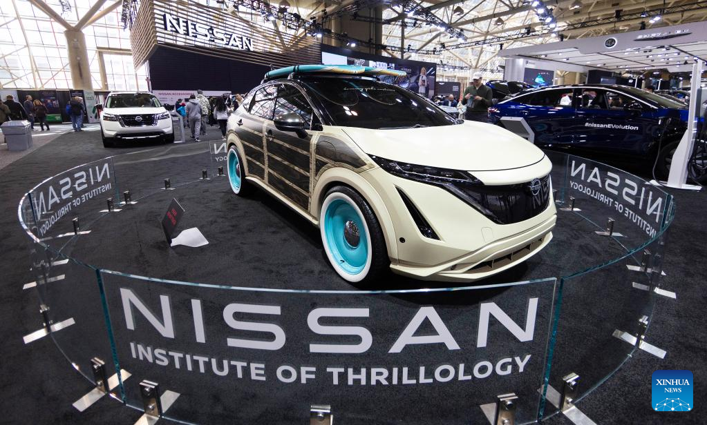 A Nissan Ariya Surfwagon concept electric vehicle is seen during the 2023 Canadian International AutoShow in Toronto, Canada on Feb. 17, 2023. Showcasing the latest cars, trucks, SUVs, concept cars, exotics, electric vehicles and more, the annual 10-day autoshow kicked off here on Friday. (Photo by Zou Zheng/Xinhua)