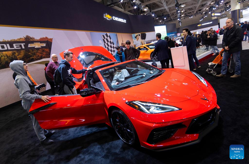 People visit a Chevrolet Corvette 3LT Coupe during the 2023 Canadian International AutoShow in Toronto, Canada on Feb. 17, 2023. Showcasing the latest cars, trucks, SUVs, concept cars, exotics, electric vehicles and more, the annual 10-day autoshow kicked off here on Friday. (Photo by Zou Zheng/Xinhua)