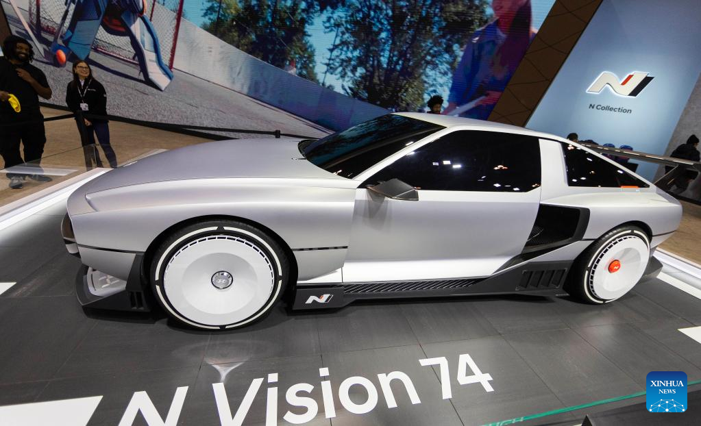 A Hyundai N Vision 74 concept hydrogen fuel cell vehicle is seen during the 2023 Canadian International AutoShow in Toronto, Canada on Feb. 17, 2023. Showcasing the latest cars, trucks, SUVs, concept cars, exotics, electric vehicles and more, the annual 10-day autoshow kicked off here on Friday. (Photo by Zou Zheng/Xinhua)