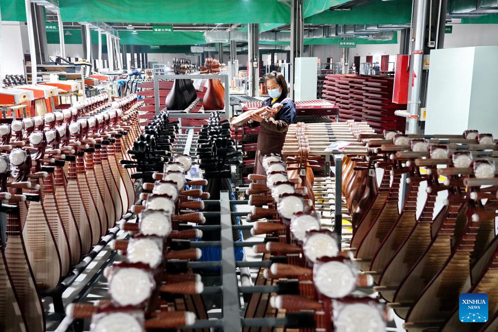 More than 800,000 Chinese traditional musical instruments are produced annually by over 70 plants in the county. (Xinhua/Mu Yu)