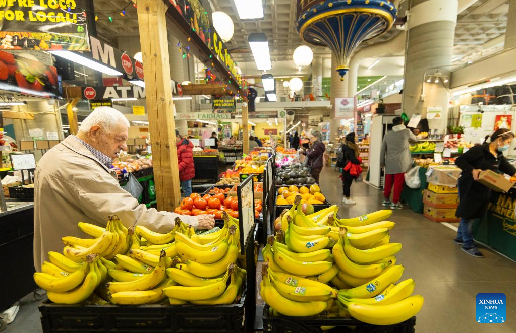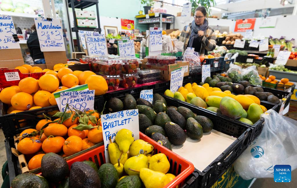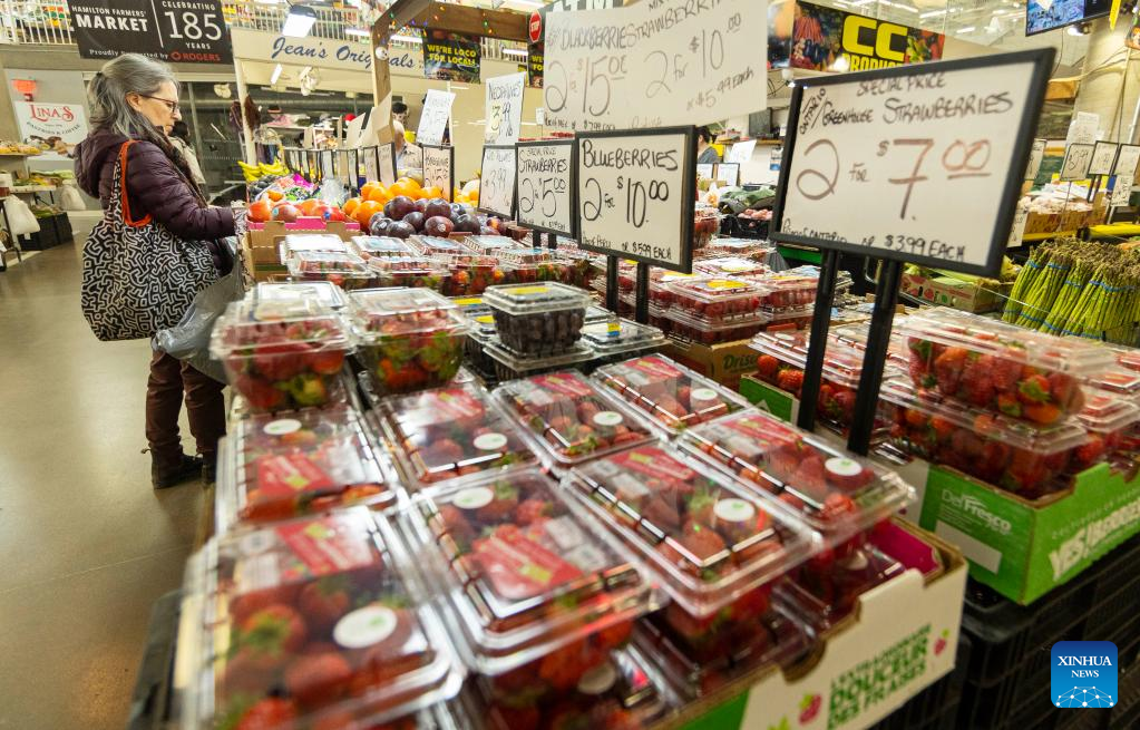 A customer shops at a market in Hamilton, Ontario, Canada, on March 21, 2023. Canada's Consumer Price Index (CPI) rose 5.2 percent year on year in February, following a 5.9 percent increase in January, Statistics Canada said on Tuesday. (Photo by Zou Zheng/Xinhua)