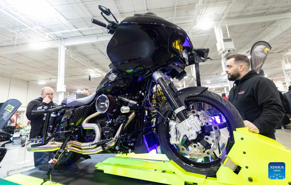People visit the 2023 Toronto International Spring Motorcycle Show in Mississauga, the Greater Toronto Area, Canada, on April 2, 2023. (Photo by Zou Zheng/Xinhua)