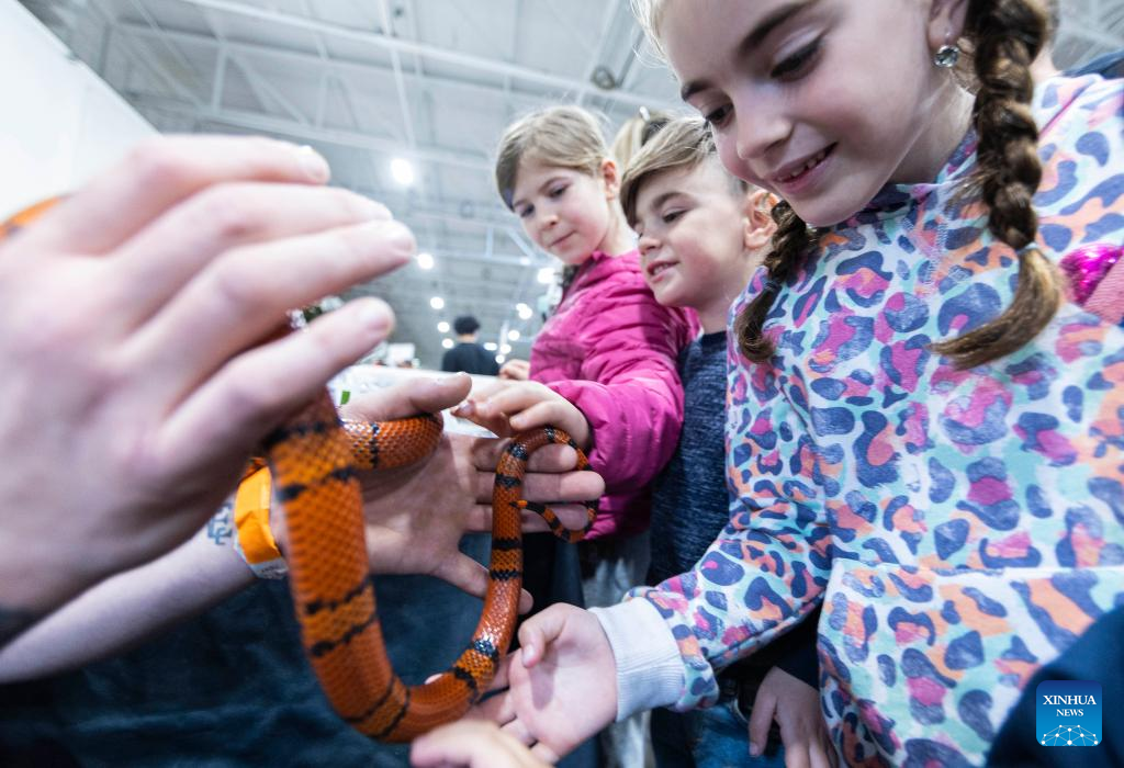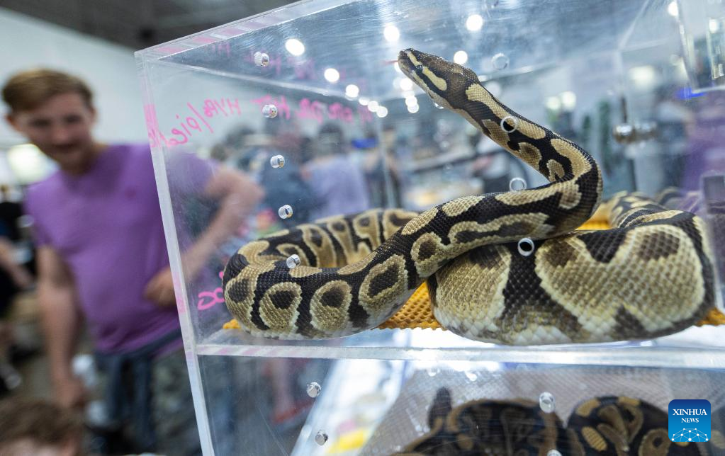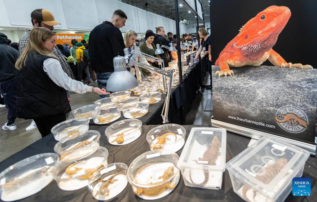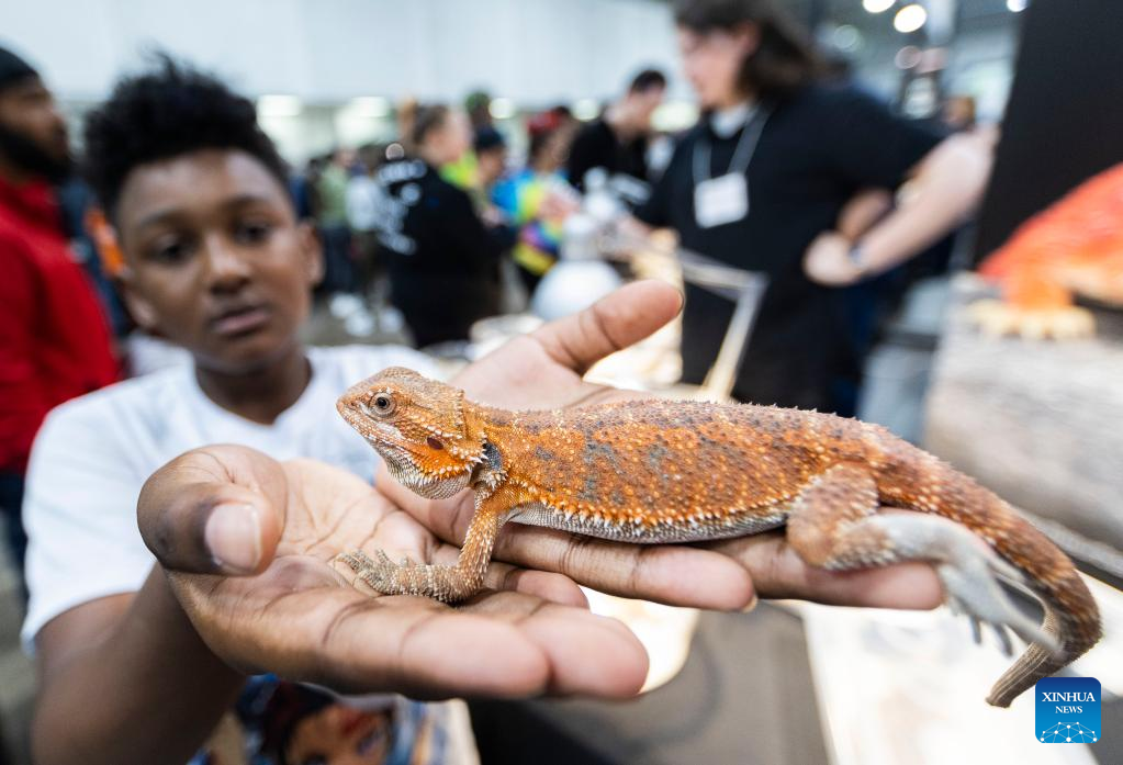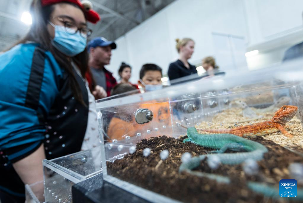People visit the 2023 Toronto Reptile and Plant Expo in Mississauga, Canada, on May 7, 2023. (Photo by Zou Zheng/Xinhua)