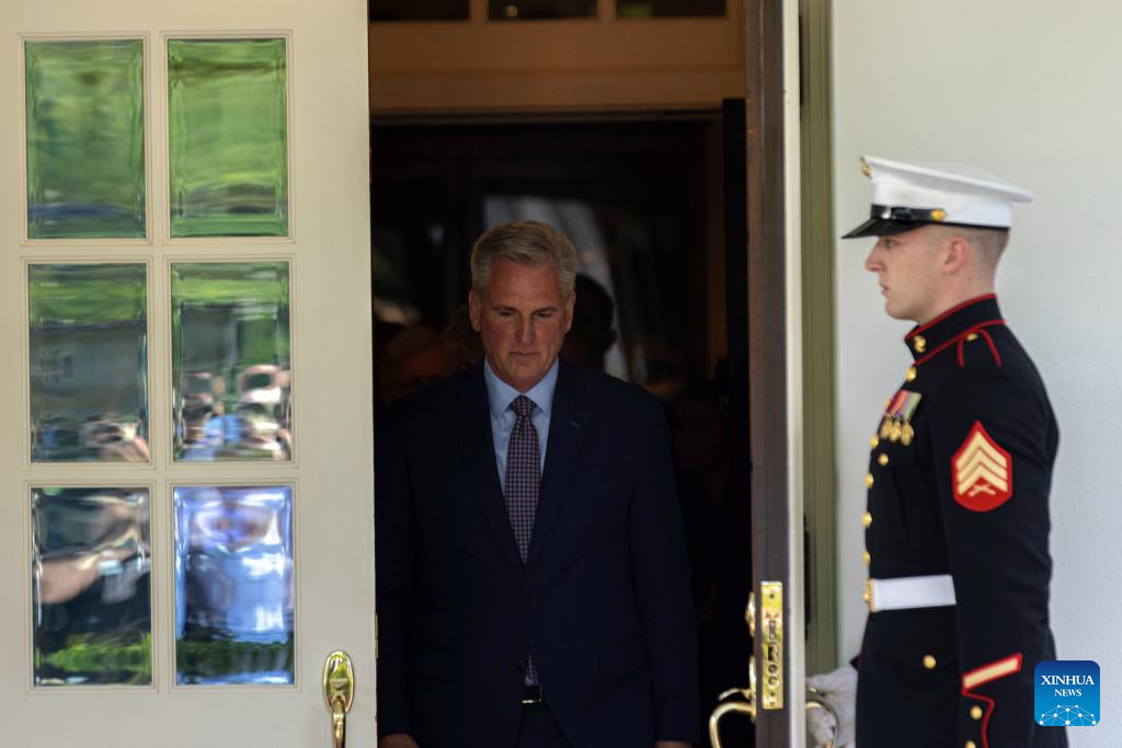 "We're the only ones to pass a plan," McCarthy said at a news conference earlier, referring to a bill passed by House Republicans in late April, which raises the debt limit by 1.5 trillion dollars or until March 31, whichever comes first, while reducing funding for federal agencies and limiting growth in government spending. The bill would also repeal some tax incentives for renewable energy, one of Biden's signature policies.