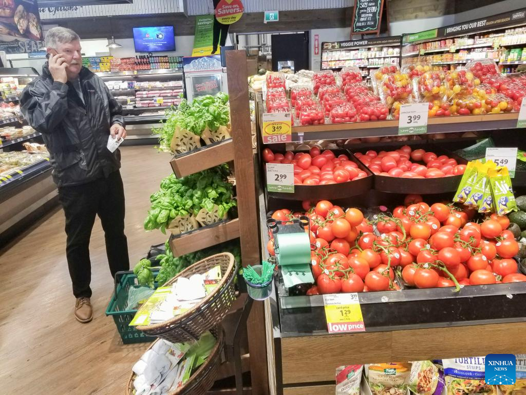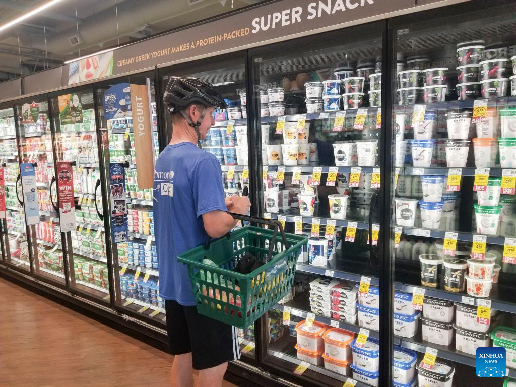 A customer shops for groceries at a grocery store in Vancouver, British Columbia, Canada, on May 16, 2023. Canada's Consumer Price Index (CPI) rose 4.4 percent year over year in April, following a 4.3 percent increase in March, Statistics Canada said Tuesday. (Photo by Liang Sen/Xinhua)
