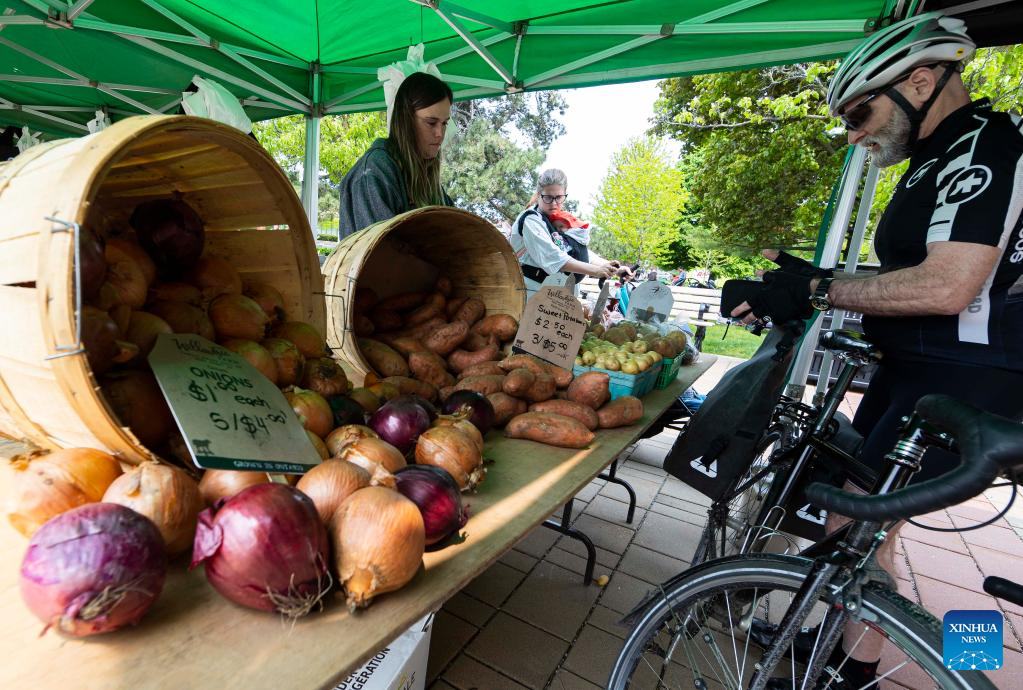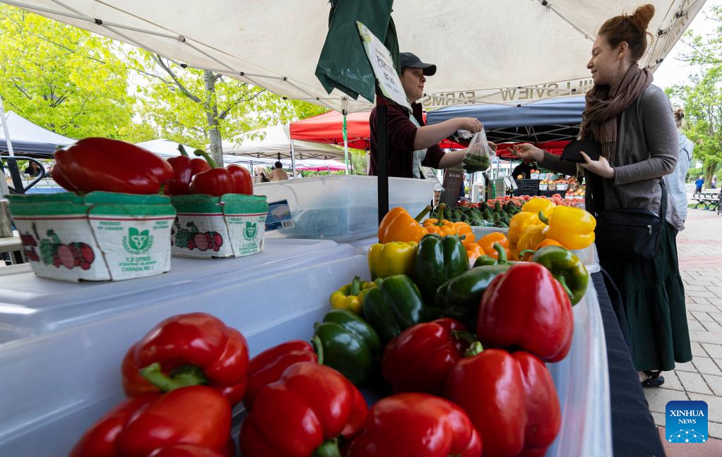 A customer shops at a farmers' market in Toronto, Canada, on May 16, 2023. Canada's Consumer Price Index (CPI) rose 4.4 percent year over year in April, following a 4.3 percent increase in March, Statistics Canada said Tuesday. (Photo by Zou Zheng/Xinhua)