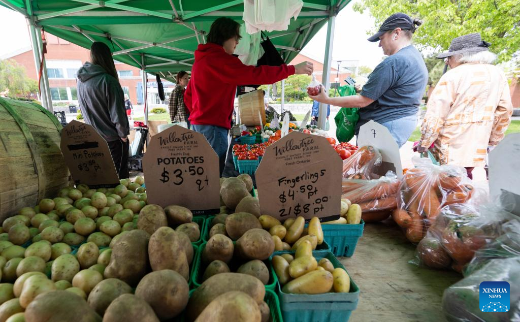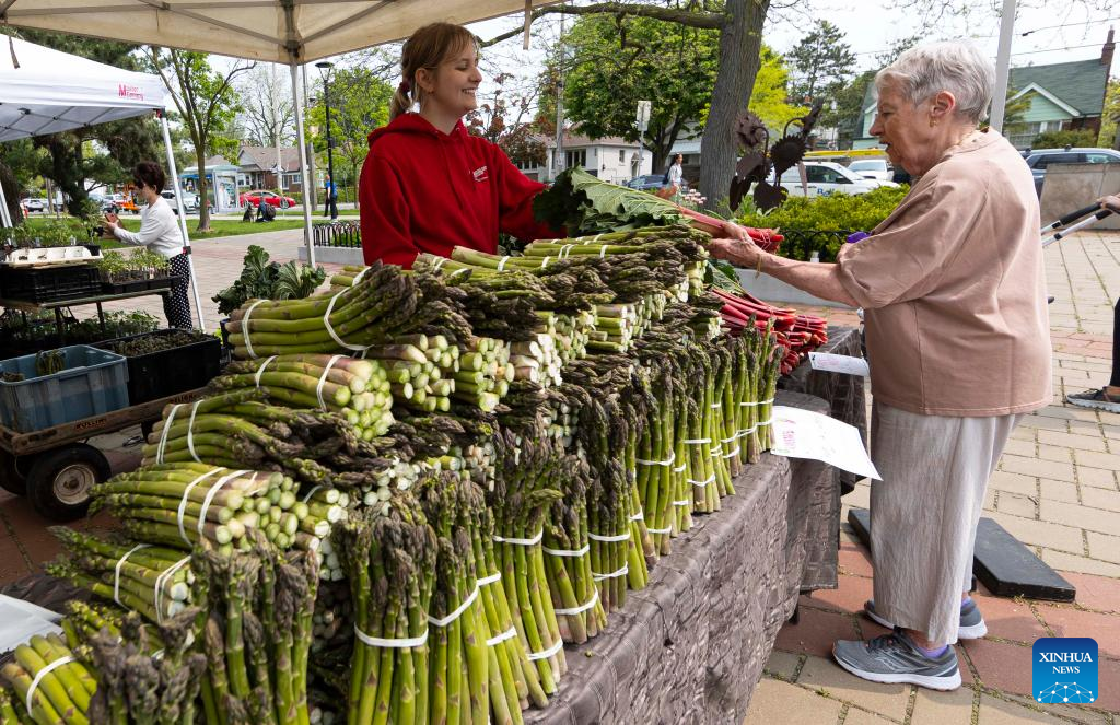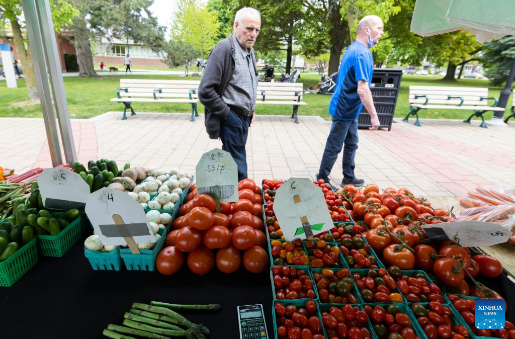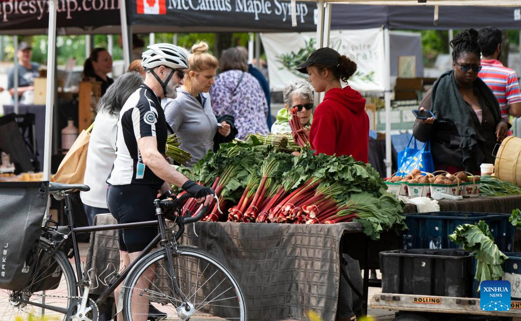 People shop at a farmers' market in Toronto, Canada, on May 16, 2023. Canada's Consumer Price Index (CPI) rose 4.4 percent year over year in April, following a 4.3 percent increase in March, Statistics Canada said Tuesday. (Photo by Zou Zheng/Xinhua)