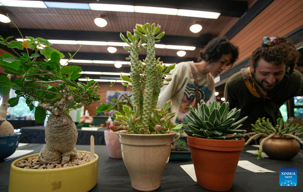 This photo taken on June 11, 2023 shows succulents displayed at an annual show of desert plants in Vancouver, British Columbia, Canada. The annual event brought together collectors, enthusiasts and experts to share their knowledge and passion for cactus and succulents. (Photo by Liang Sen/Xinhua)