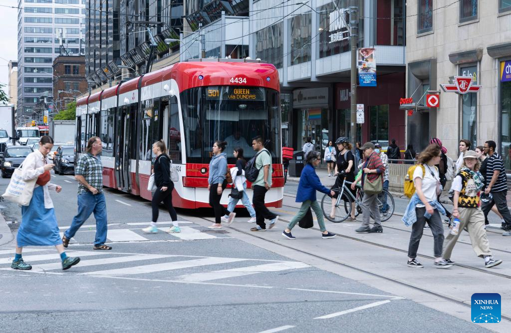 People walk on a street in Toronto, Ontario, Canada, on June 16, 2023. Canada's population reached a milestone of 40 million as of June 16, 2023, Statistics Canada announced Friday. (Photo by Zou Zheng/Xinhua)
