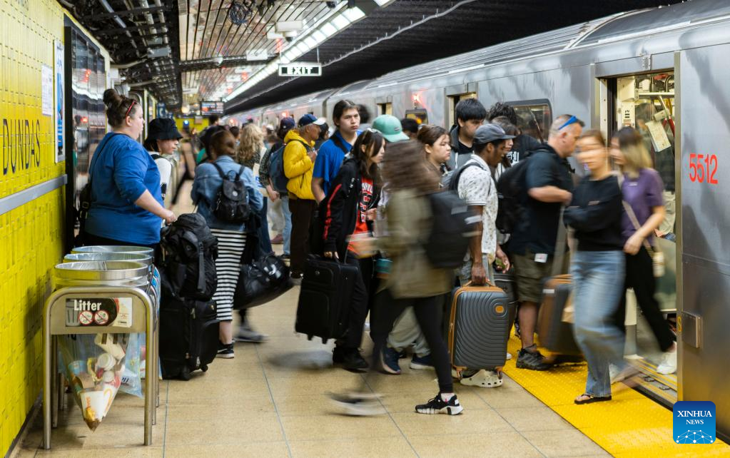 People are seen at a subway station in Toronto, Ontario, Canada, on June 16, 2023. Canada's population reached a milestone of 40 million as of June 16, 2023, Statistics Canada announced Friday. (Photo by Zou Zheng/Xinhua)