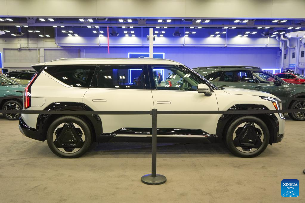 A KIA all-electric SUV is on display at the 2023 Austin Auto Show in Austin, Texas, the United States, on June 30, 2023. The 2023 Austin Auto Show kicked off here on Friday. (Photo by Bo Lee/Xinhua)