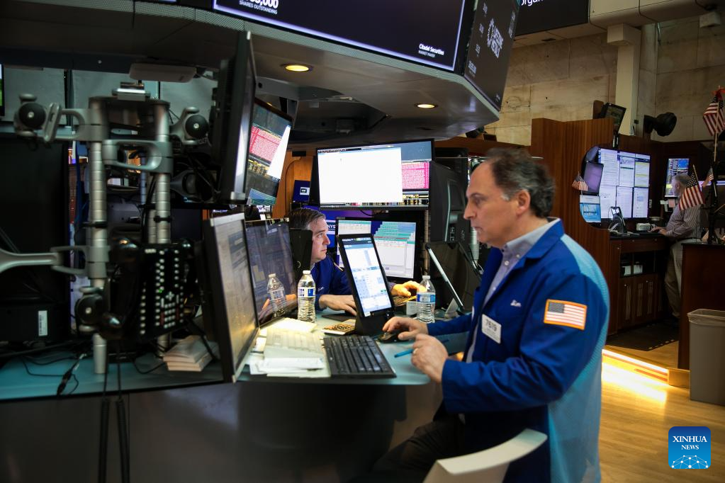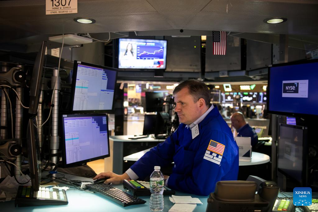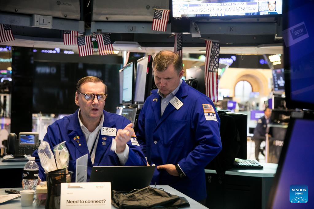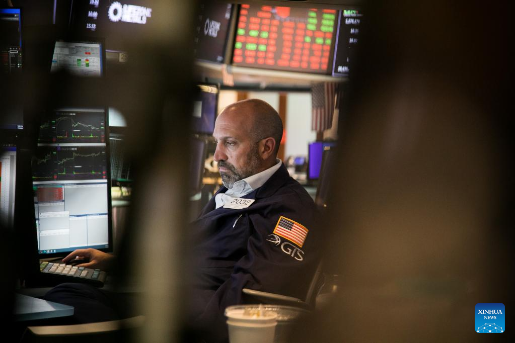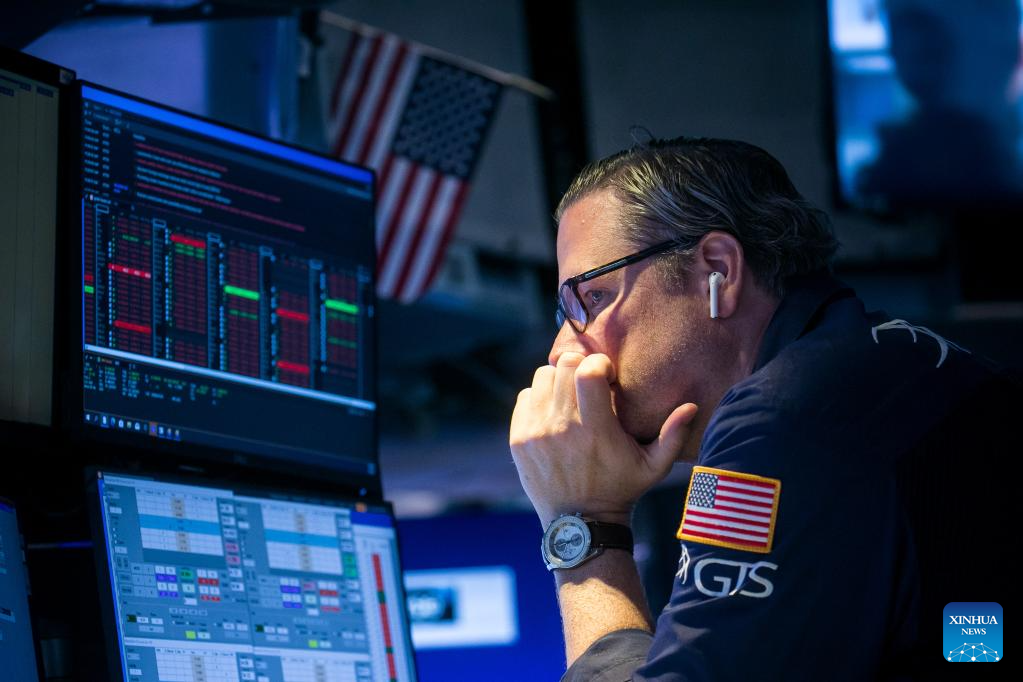 NEW YORK, July 6 (Xinhua) -- U.S. stocks ended lower on Thursday as strong private hiring data fueled bets the Federal Reserve will have to take a more aggressive approach to tame inflation, which sent U.S. Treasury yields higher and weighed on equity markets.