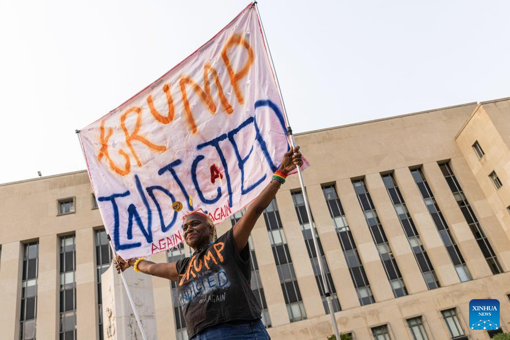 NEW YORK, Aug. 1 (Xinhua) -- Former U.S. President Donald Trump was indicted on Tuesday in a Justice Department investigation for his alleged efforts to overturn the results of the 2020 presidential election.