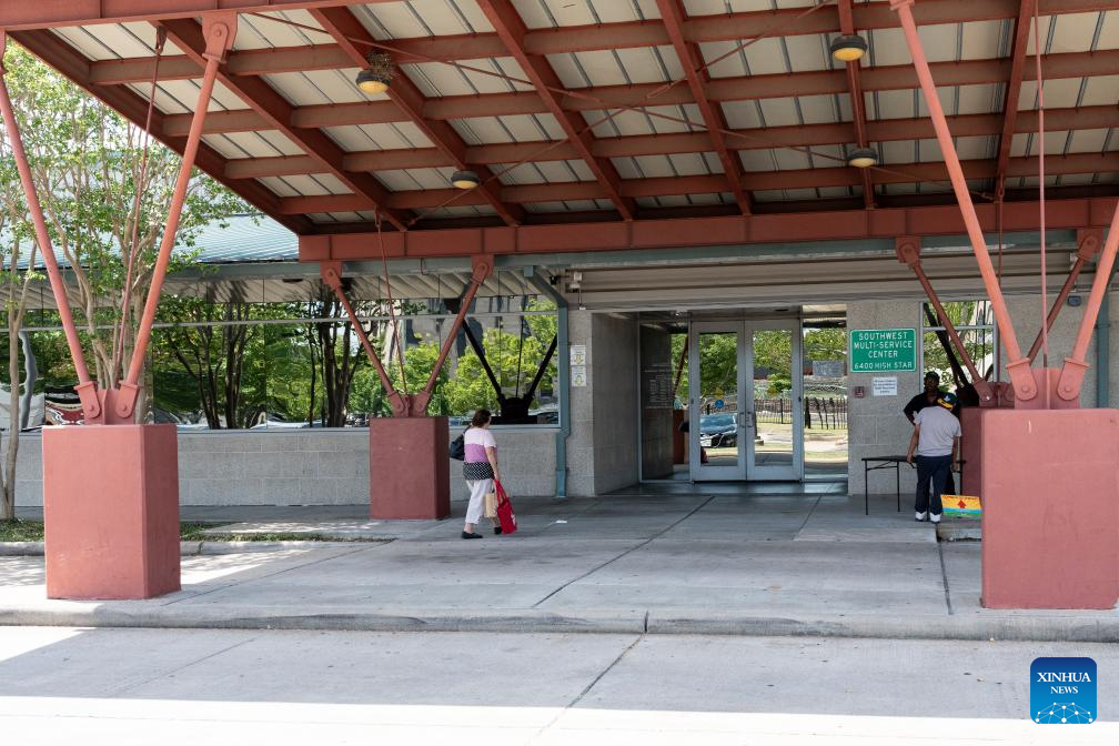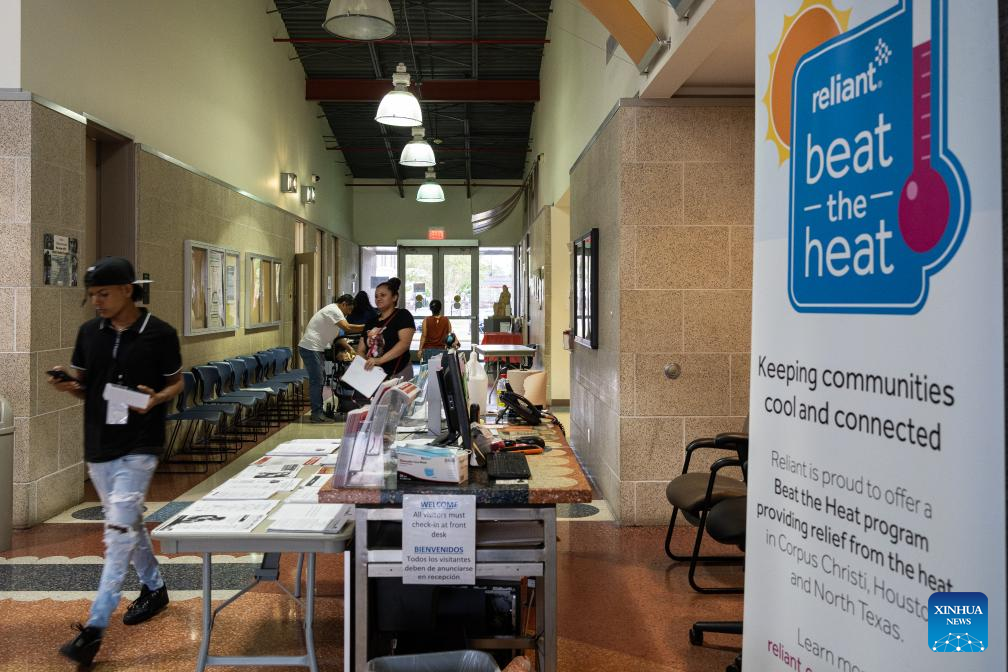 People are seen in Southwest Multi-Service Center, which serves as a cooling center, in Houston, Texas, the United States, on Aug. 4, 2023. (Photo by Chen Chen/Xinhua)