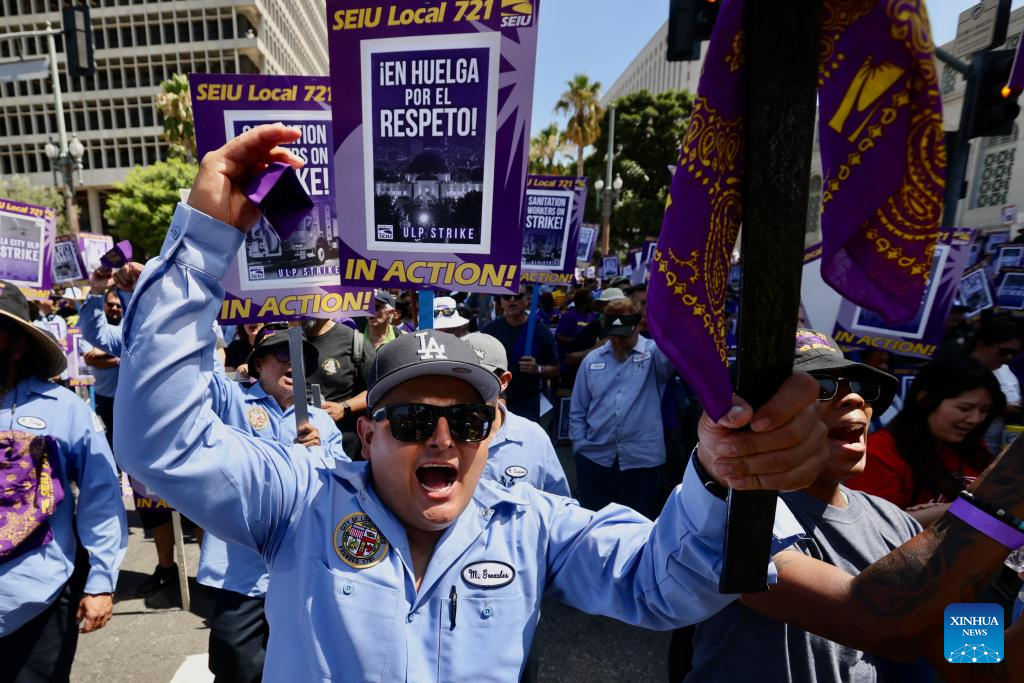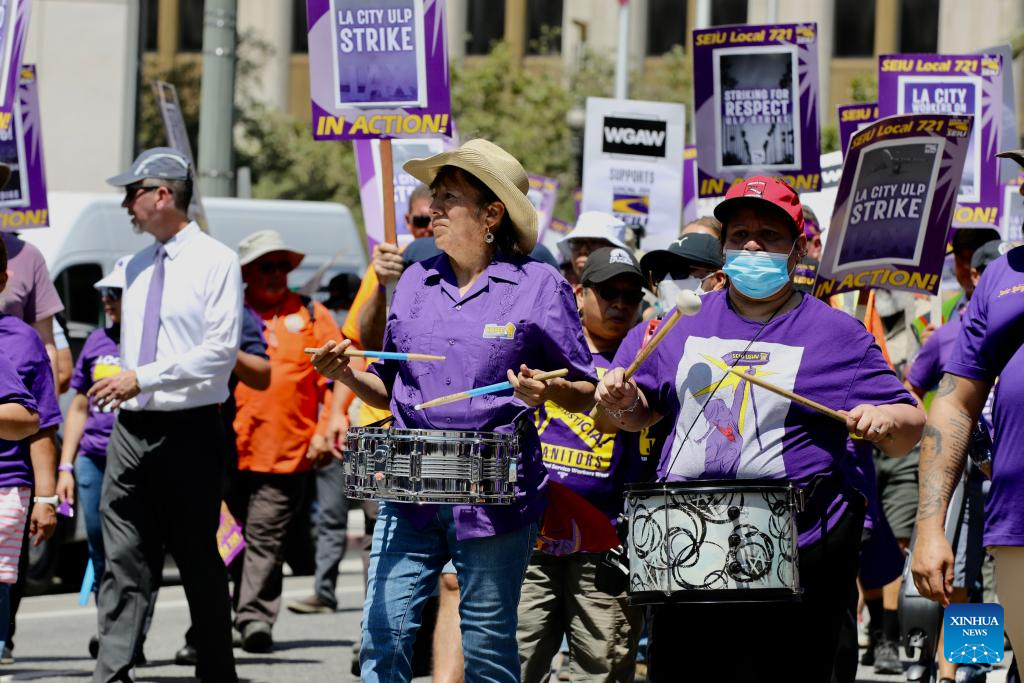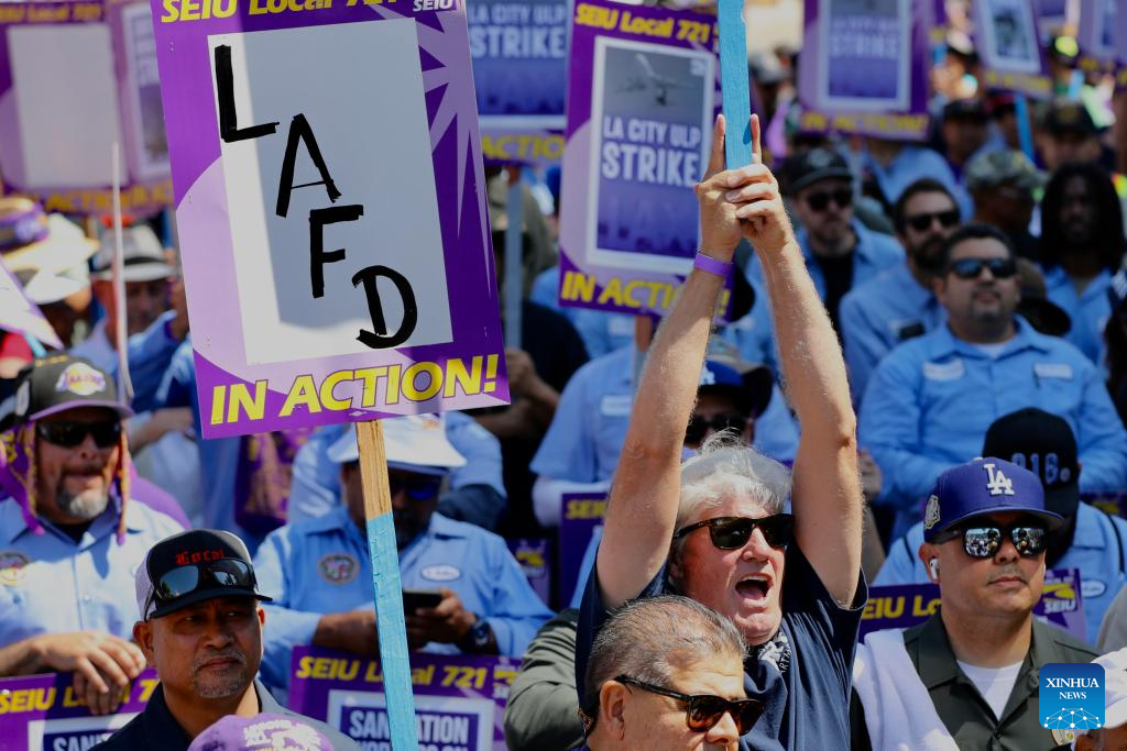 LOS ANGELES, Aug. 8 (Xinhua) -- More than 11,000 city workers in Los Angeles, the second largest city in the United States, are walking off their job on Tuesday for a 24-hour strike.