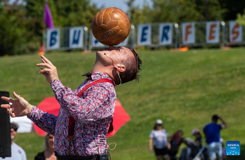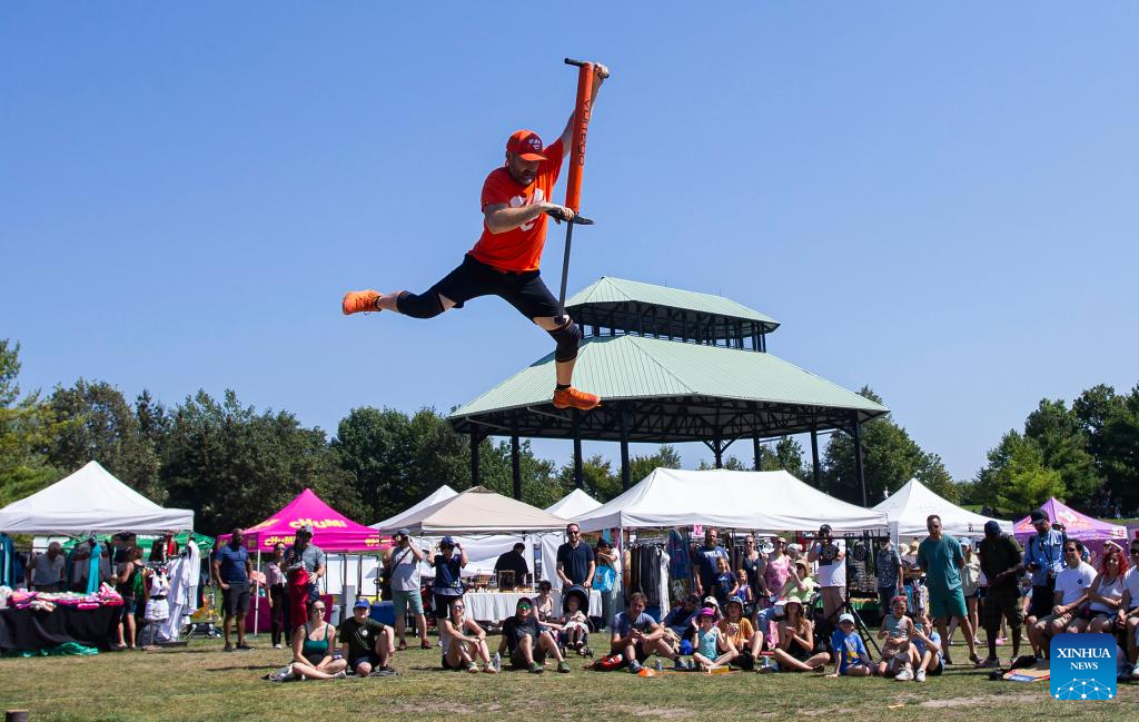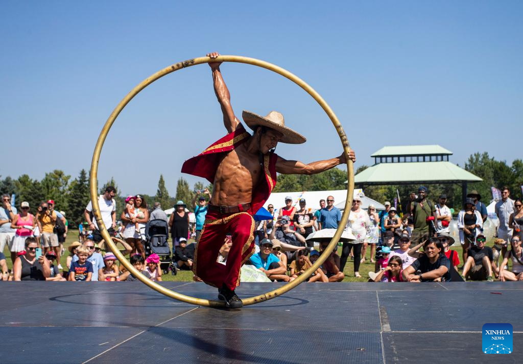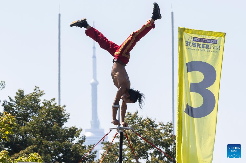 A busker performs during the 2023 Toronto International BuskerFest in Toronto, Canada, on Sept. 4, 2023. This event was held here from Sept. 1 to 4 with the participation of about 100 street performers from around the world. (Photo by Zou Zheng/Xinhua)