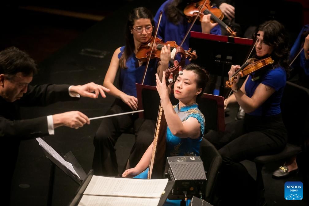 Musicians perform at Jazz at Lincoln Center in New York, the United States, Oct. 8, 2023. The sixth season of the China Now Music Festival culminated in a grand finale on Sunday in a spellbinding concert at Jazz at Lincoln Center in New York City, paying homage to three generations of composers bridging the United States and China. (Photo by Michael Nagle/Xinhua)