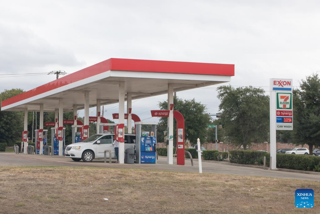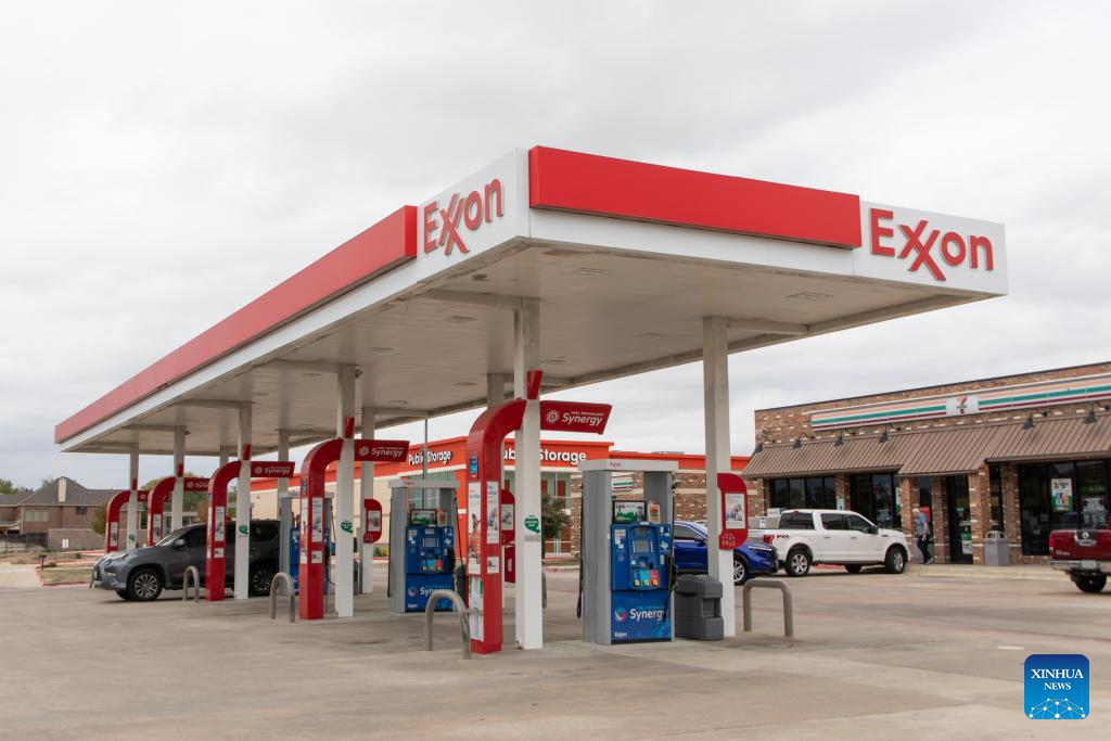 This photo taken on Oct. 11, 2023 shows an Exxon gas station in Plano, on the outskirts of Dallas, Texas, the United States. Exxon Mobil announced Wednesday it was buying Pioneer Natural Resources, a shale drilling firm, for 59.5 billion U.S. dollars, in a bid to expand its oil production in West Texas. (Photo by Dan Tian/Xinhua)