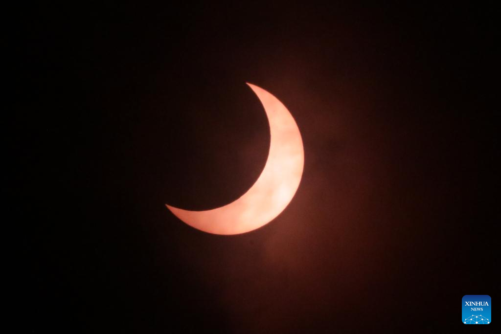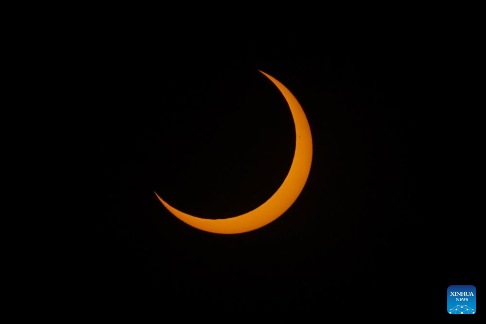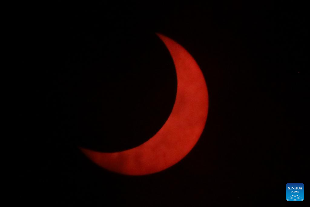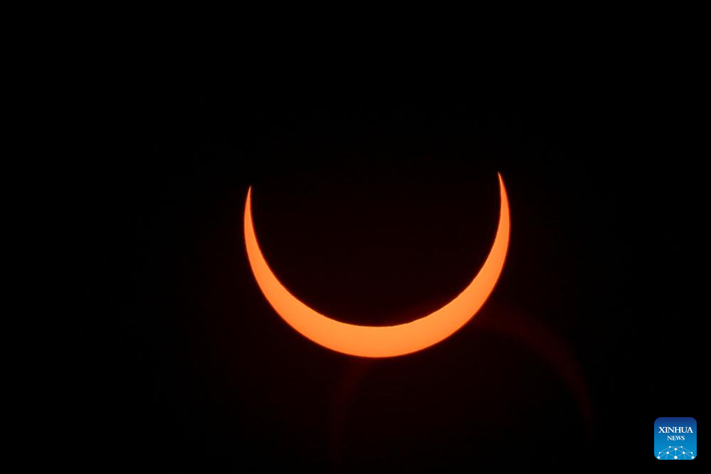 The sun is seen during a solar eclipse in Tegucigalpa, Honduras, Oct. 14, 2023. (Photo by Rafael Ochoa/Xinhua)