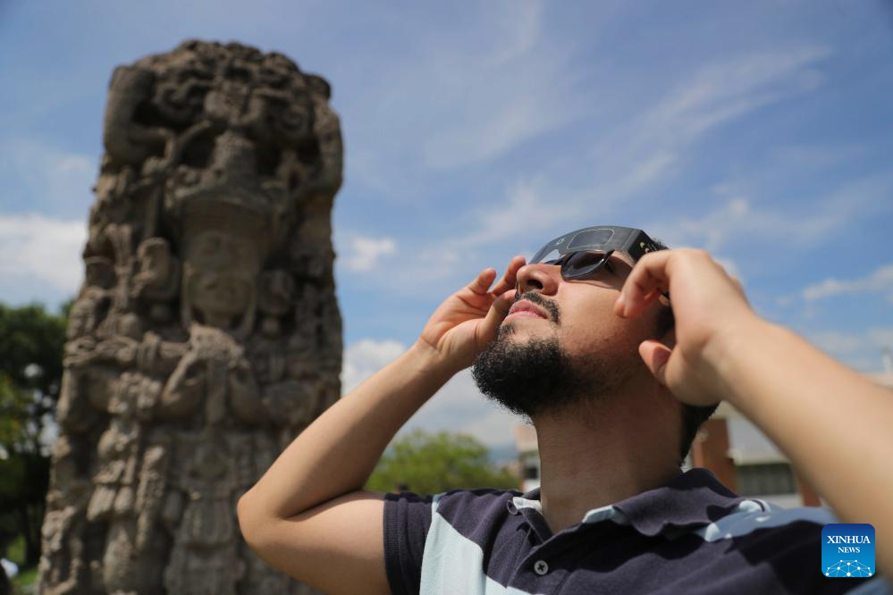A man observes a solar eclipse in Tegucigalpa, Honduras, Oct. 14, 2023. (Photo by Rafael Ochoa/Xinhua)