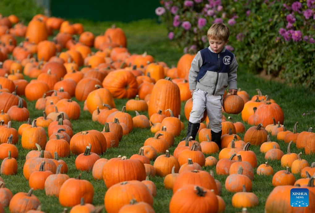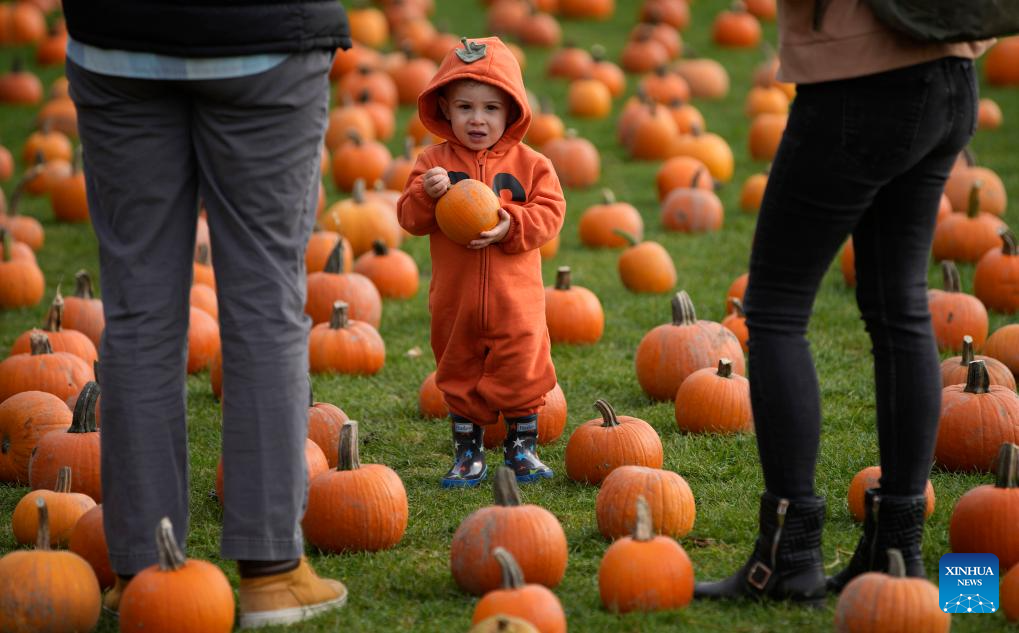 A child visits a pumpkin patch in Richmond, British Columbia, Canada, Oct. 14, 2023. Pumpkin patch visit is a cherished annual tradition as people flock to farms to handpick their favourite pumpkins, celebrating the bountiful harvest season. (Photo by Liang Sen/Xinhua)