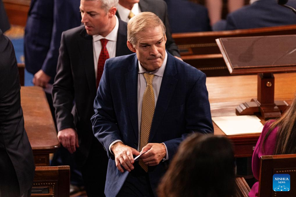 WASHINGTON, Oct. 17 (Xinhua) -- The U.S. House of Representatives on Tuesday failed to elect a new speaker in the first round of voting, as Right-wing Republican Jim Jordan, chairman of the House Judiciary Committee, didn't garner enough support from his own party two weeks after the historical ouster of Kevin McCarthy.