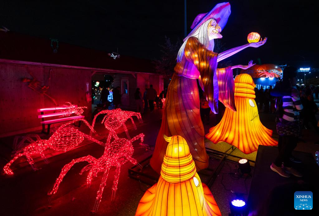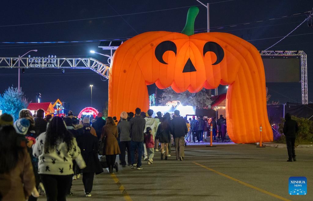 People line up at the entrance of the 2023 Illumi lights show in Mississauga, Ontario, Canada, on Oct. 18, 2023. (Photo by Zou Zheng/Xinhua)