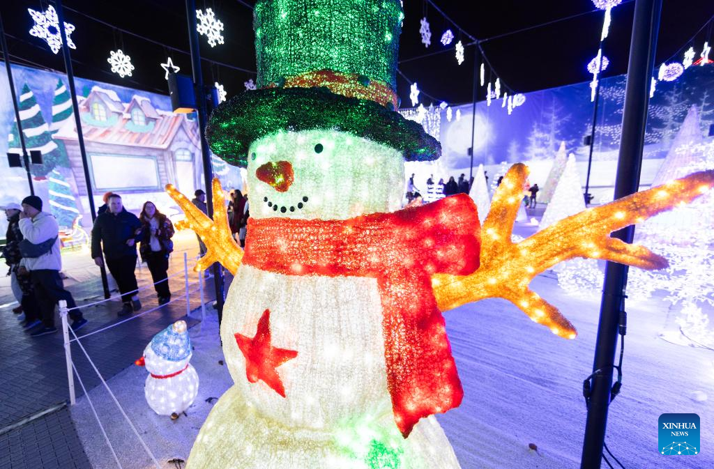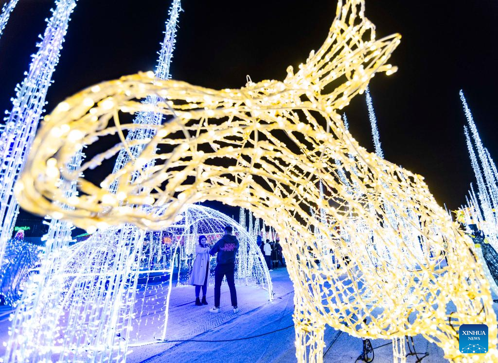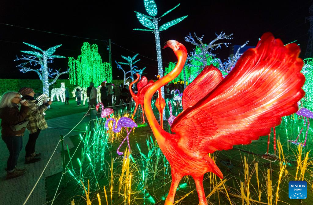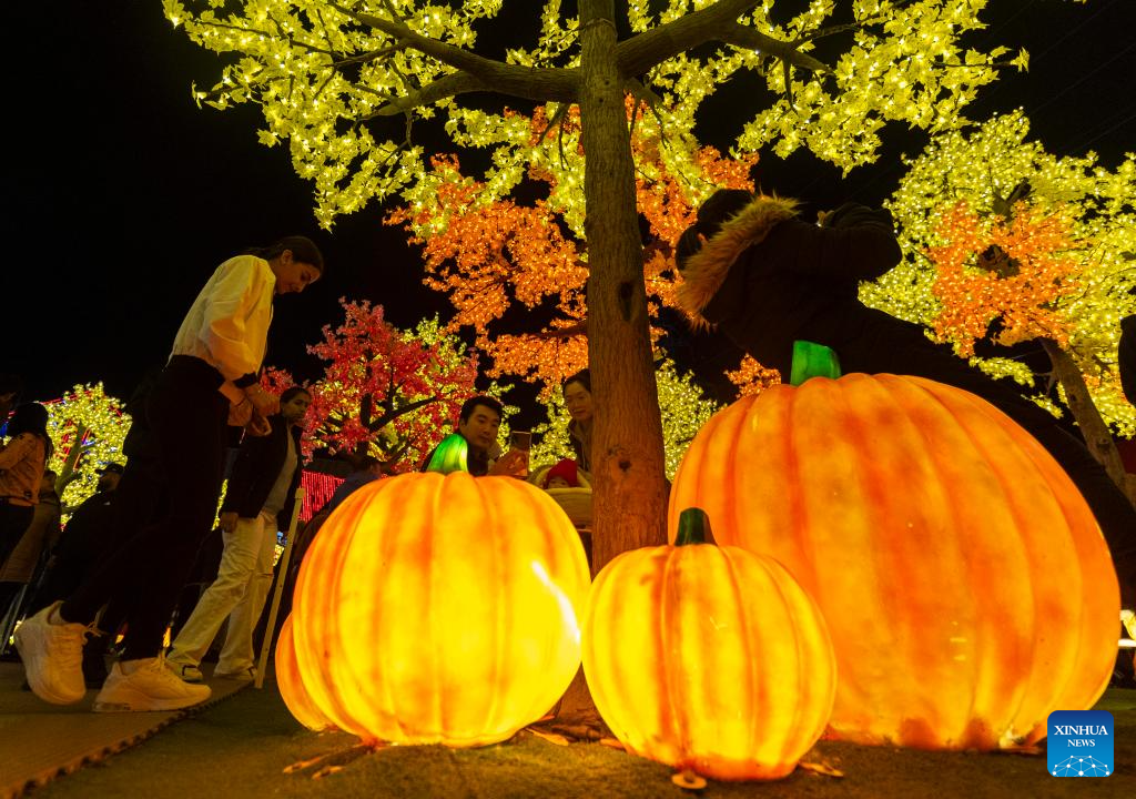 People visit the 2023 Illumi lights show in Mississauga, Ontario, Canada, on Oct. 18, 2023. (Photo by Zou Zheng/Xinhua)