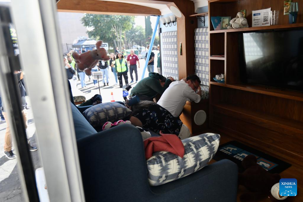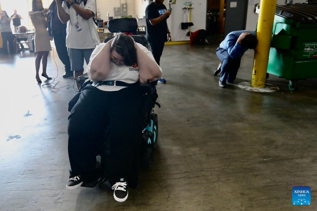 LOS ANGELES, Oct. 19 (Xinhua) -- An annual earthquake drill was held across the United States on Thursday, in an aim to help people better protect themselves during earthquakes.